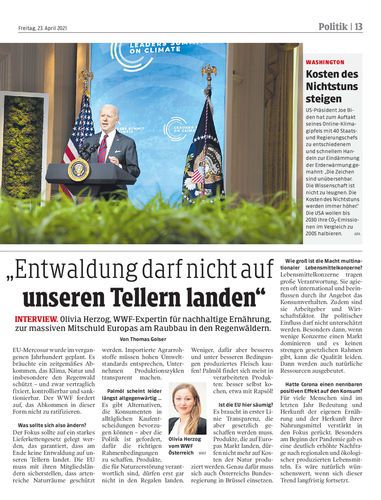 Olivia Herzog, WWF-Expertin für nachhaltige Ernährung, zur massiven Mitschuld Europas am Raubbau in den Regenwäldern. Von Thomas Golser