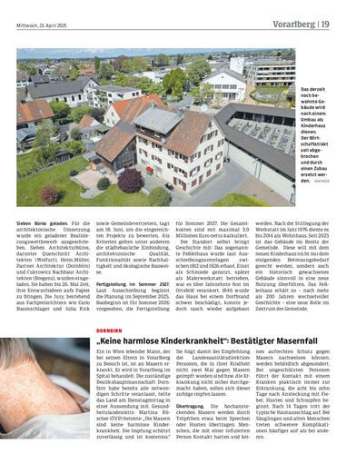 Der Bedarf an Kinderbetreuung steigt, auch in der Marktgemeinde Lauterach. Nun soll ein Gebäude aus dem frühen 19. Jahrhundert umgebaut und erweitert werden. Architektonische Ideen dafür werden im Wettbewerb gesucht.