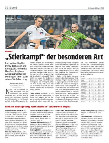 Lustenau verpasst Tabellenführung