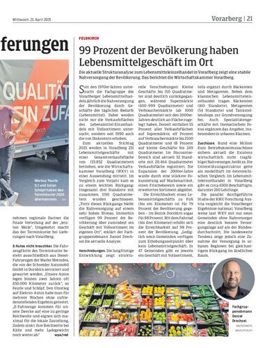 Die aktuelle Strukturanalyse zum Lebensmitteleinzelhandel in Vorarlberg zeigt eine stabile Nahversorgung der Bevölkerung. Das berichtet die Wirtschaftskammer Vorarlberg.
