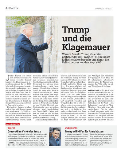Warum Donald Trump als erster amtierender US-Präsident die heiligste jüdische Stätte besucht und damit die Palästinenser vor den Kopf stößt.