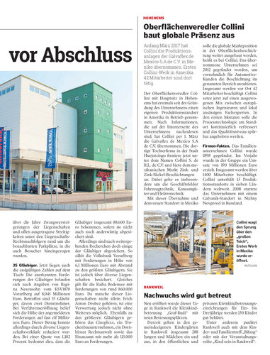 Anfang März 2017 hat Collini die Produktionsanlagen der Galvaflex de Mexico S.A de C.V. in Mexiko übernommen. Erstes Collini-Werk in Amerika. 42 Mitarbeiter sind dort tätig.