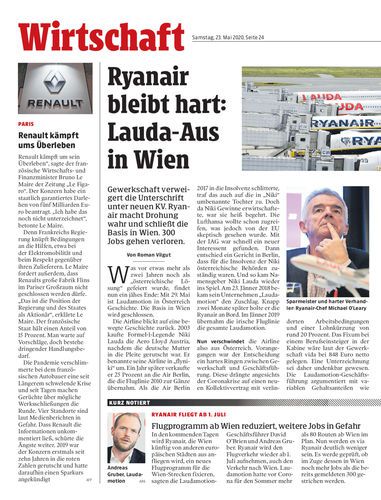 Gewerkschaft verweigert die Unterschrift unter neuen KV. Ryan-air macht Drohung wahr und schließt die Basis in Wien. 300 Jobs gehen verloren.