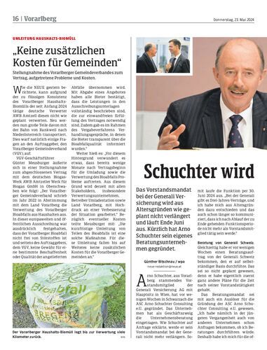 Stellungnahme des Vorarlberger Gemeindeverbandes zum Vertrag, aufgetretene Probleme und Kosten.