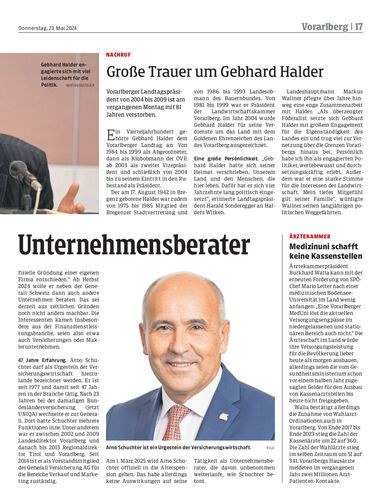 Vorarlberger Landtagspräsident von 2004 bis 2009 ist am vergangenen Montag mit 81 Jahren verstorben.