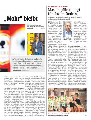 Spartenvertreter fordern dieselben Corona-Rahmenbedingungen wie etwa im Handel.
