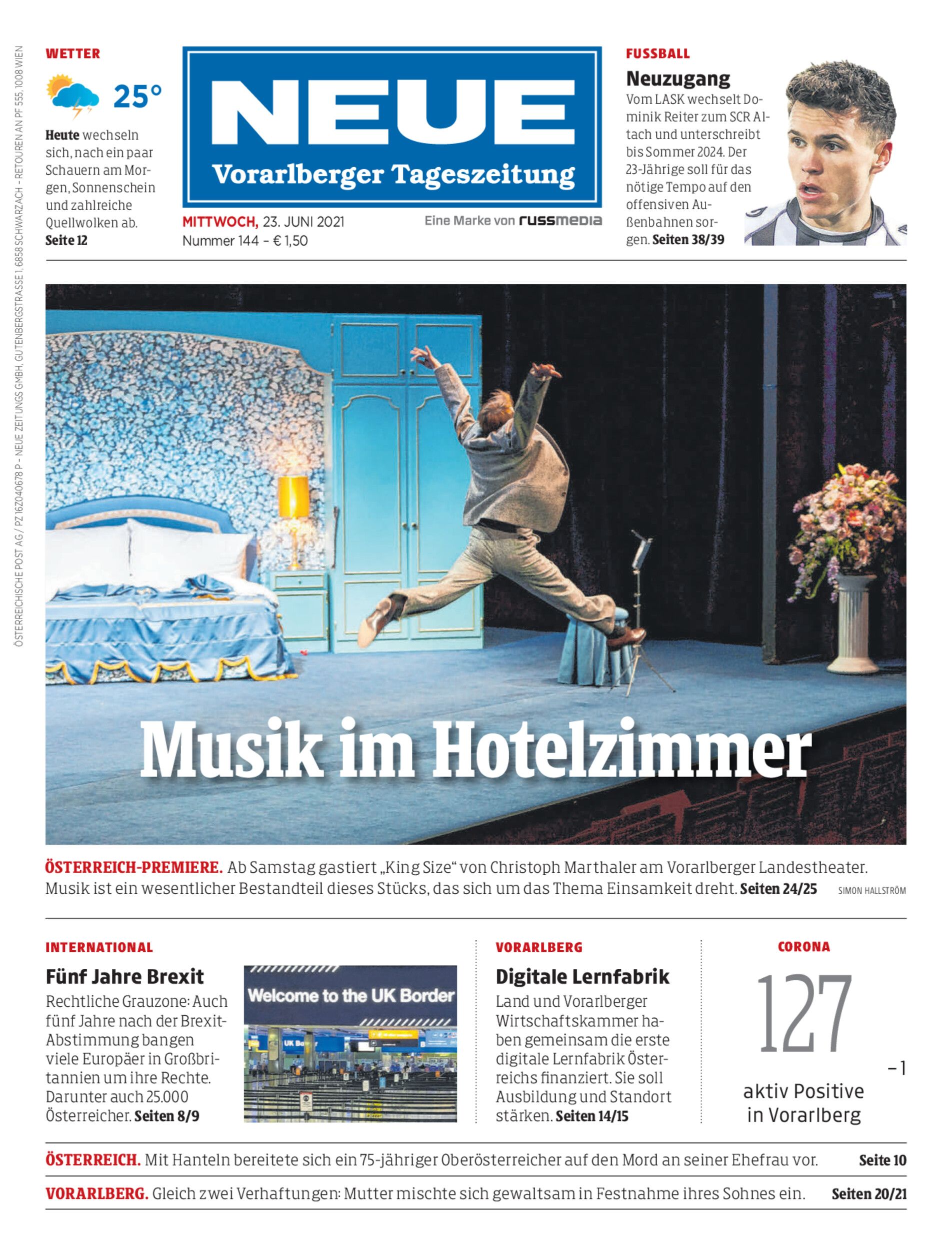 Christoph Marthalers „King Size“ feiert am Vorarlberger Landestheater Österreich-Premiere. Stephanie Gräve informiert über das Stück.