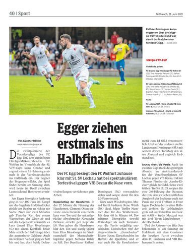Der FC Egg besiegt den FC Wolfurt zuhause klar mit 5:1. SV Lochau hat bei spektakulärem Torfestival gegen VfB Bezau die Nase vorn.