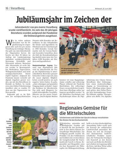 Jahresbericht von pro mente Vorarlberg wurde veröffentlicht. Im Jahr des 30-jährigen Bestehens wurden aufgrund der Pandemie