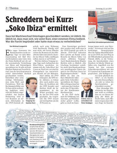 Dass bei einem Regierungswechsel Unterlagen geschreddert werden, ist üblich. Unüblich ist, dass, wie bei Ex-Kanzler Kurz, eine externe Firma damit betraut wurde. Thema, Seite 4/5