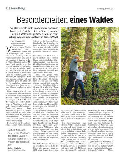 Der Plenterwald in Krumbach wird naturnah bewirtschaftet. Er ist klimafit, und das wird nun mit Waldfonds gefördert. Minister Totschnig machte sich ein Bild von diesem Wald.