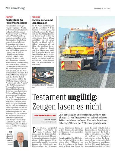 OGH bestätigten Entscheidung: Alle drei Zeuginnen hätten Testament von sehbehinderter Erblasserin lesen müssen. Nun erbt Erbe ihres Lebensgefährten, der früher vorgesehen war.