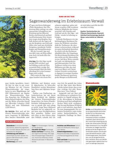 Wanderführer Hertha Glück und Gerhard Vylet wandern von der Bergstation Kristbergbahn entlang Siebenbrünnele und Hochmoor Wildried zur Unteren Wasserstubenalpe und zurück.