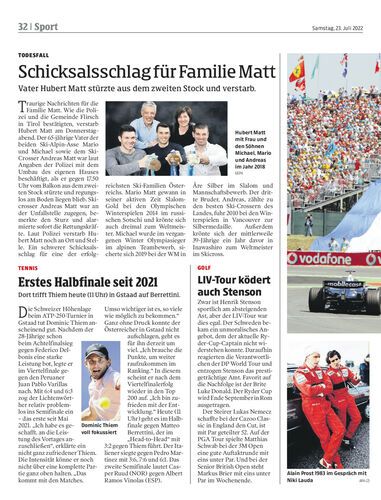 Vater Hubert Matt stürzte aus dem zweiten Stock und verstarb.
