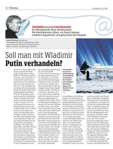 THURNHER kontr@ FLEISCHHACKER Ein Wortgefecht ohne Sichtkontakt. Die Kontrahenten sitzen vor ihren Laptops, schärfen Argumente und gehorchen drei Regeln: