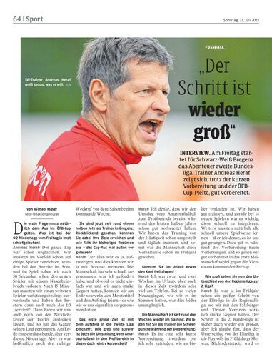 Interview. Am Freitag startet für Schwarz-Weiß Bregenz das Abenteuer zweite Bundesliga. Trainer Andreas Heraf zeigt sich, trotz der kurzen Vorbereitung und der ÖFB-Cup-Pleite, gut vorbereitet.