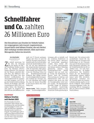 Die Einnahmen aus Strafen im Verkehr haben im vergangenen Jahr massiv zugenommen. Grund dafür sind höhere Strafen, die seit Herbst 2021 verhängt werden können. Aber auch neue Messgeräte fallen ins Gewicht.