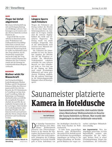 Saunameister versuchte, drei nackte Gäste eines Montafoner Wellnesshotels in Dusche der Sauna heimlich zu filmen. Nun wurde der Angeklagte zu einer Geldstrafe verurteilt.