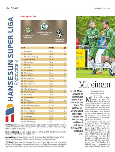 Der FC Alberschwende ist Meister in der Hansesun Super Liga. Die Wälder gewinnen mit einem fulminanten Vorsprung und holen sich auch die Monatswertung Mai.