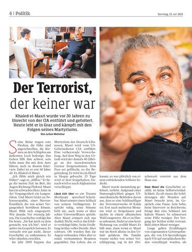 Khaled el-Masri wurde vor 20 Jahren zu Unrecht von der CIA entführt und gefoltert. Heute lebt er in Graz und kämpft mit den Folgen seines Martyriums. Von Julian Melichar