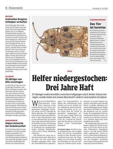57-Jähriger wollte Konflikt zwischen Fußgänger und E-Roller-Fahrer beilegen, wurde dabei mit einem Metallstift verletzt und landete im Spital.