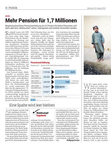 Regierung beschloss Pensionserhöhung um 2,2 Prozent für kleine Pensionen, will aber kein „Wahlzuckerl“ sehen. Islamgesetz soll schärfer kontrolliert werden.
