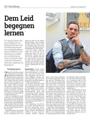 Dr. Raoul Pinter (40, aus Feldkirch) ist Radioonkologe und Strahlentherapeut am Landeskrankenhaus Feldkirch. Der Mediziner erzählt, wie schwierig es war, zu lernen, dem Leid der Patienten und dem eigenen zu begegnen.