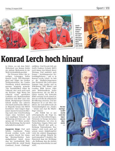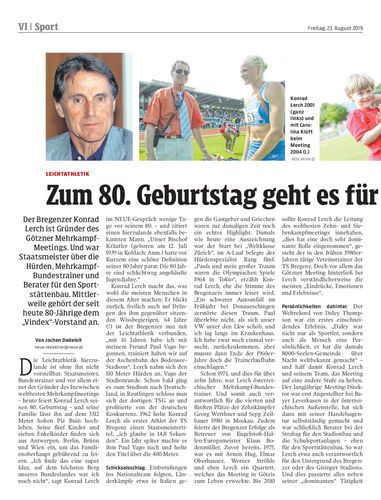 Der Bregenzer Konrad Lerch ist Gründer des Götzner Mehrkampf-Meetings. Und war Staatsmeister über die Hürden, Mehrkampf-Bundestrainer und Berater für den Sportstättenbau. Mittlerweile gehört der seit heute 80-Jährige dem „Vindex“-Vorstand an.