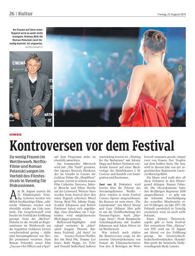 Zu wenig Frauen im Wettbewerb, Netflix-Filme und Roman Polanski sorgen im Vorfeld des Filmfestivals in Venedig für Diskussionen.