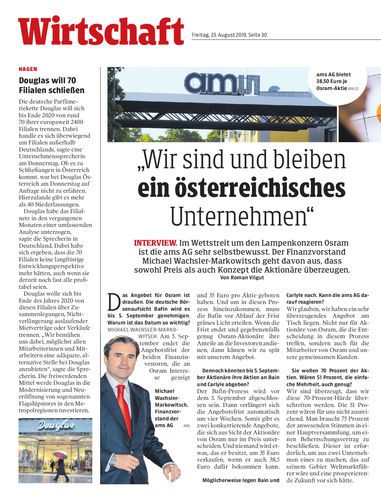 Im Wettstreit um den Lampenkonzern Osram ist die ams AG sehr selbstbewusst. Der Finanzvorstand Michael Wachsler-Markowitsch geht davon aus, dass sowohl Preis als auch Konzept die Aktionäre überzeugen. Von Roman Vilgut