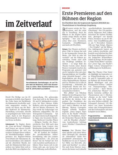 Ein Überblick über die beginnende Spielzeit 2019/2020 der Theaterhäuser in Vorarlbergs Umgebung.