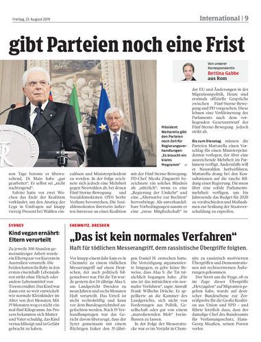 Derzeit noch keine Neuwahlen in Italien: Kommende Woche wird es weitere Beratungen geben. Heute erstmals Gespräche zwischen Fünf Sternen und den Sozialdemokraten.
