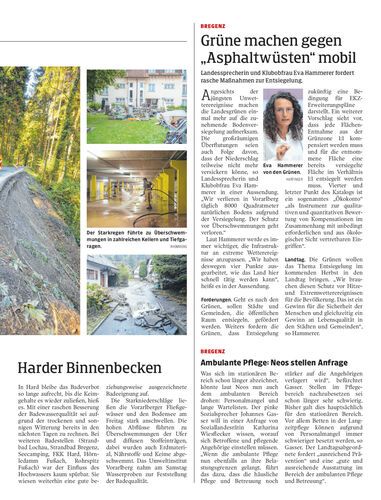Landessprecherin und Klubobfrau Eva Hammerer fordert rasche Maßnahmen zur Entsiegelung.