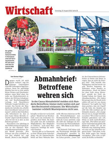 In der Causa Abmahnbrief melden sich Hunderte Betroffene. Immer mehr wollen sich auf den Rechtsstreit einlassen. Die Wirtschaftskammer schließt Musterprozess nicht aus.