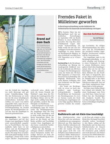 In Berufungsverhandlung wurde Geldstrafe für Vorbestraften für dauernde Sachentziehung verringert.