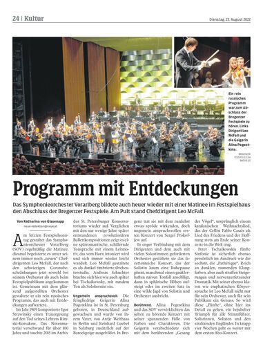 Das Symphonieorchester Vorarlberg bildete auch heuer wieder mit einer Matinee im Festspielhaus den Abschluss der Bregenzer Festspiele. Am Pult stand Chefdirigent Leo McFall.