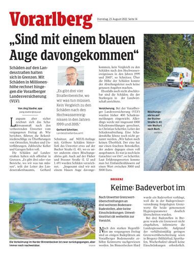 Schäden auf den Landesstraßen halten sich in Grenzen. Mit Schäden in Millionenhöhe rechnet hingegen die Vorarlberger Landesversicherung (VLV).