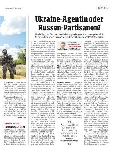 Nach Tod der Tochter des Ideologen Dugin übertrumpfen sich Geheimdienst und emigrierte Oppositionelle mit Tat-Theorien.