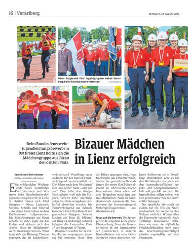 Beim Bundesfeuerwehrjugendleistungsbewerb im Osttiroler Lienz holte sich die Mädchengruppe aus Bizau den dritten Platz.