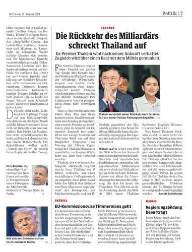 Ex-Premier Thaksin wird nach seiner Ankunft verhaftet. Zugleich wird über einen Deal mit dem Militär gemunkelt.