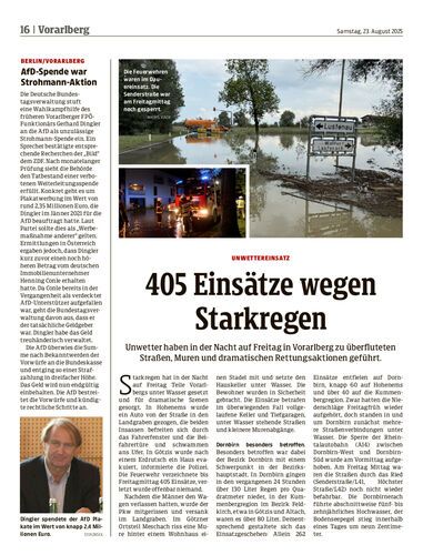 Unwetter haben in der Nacht auf Freitag in Vorarlberg zu überfluteten Straßen, Muren und dramatischen Rettungsaktionen geführt.