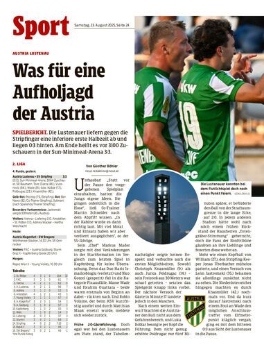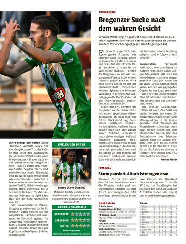 Schwarz-Weiß Bregenz gastiert heute um 14.30 Uhr bei Austria Klagenfurt. Es bleibt zu hoffen, dass Bregenz die Lehren aus dem Vorwochen-Spiel gegen den FAC gezogen hat.