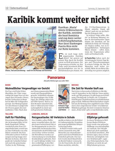 Hurrikan „Maria“ tötete 33 Menschen in der Karibik, zerstörte die Insel Dominica und zog dann weiter in Richtung Bahamas. Nun lässt Starkregen Puerto Rico nicht zur Ruhe kommen.