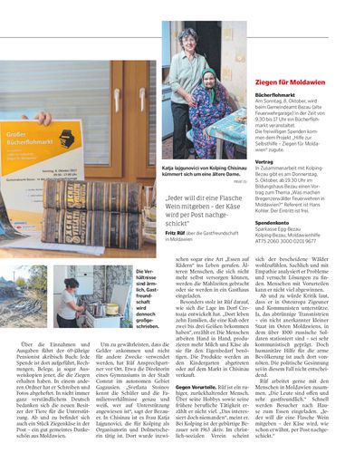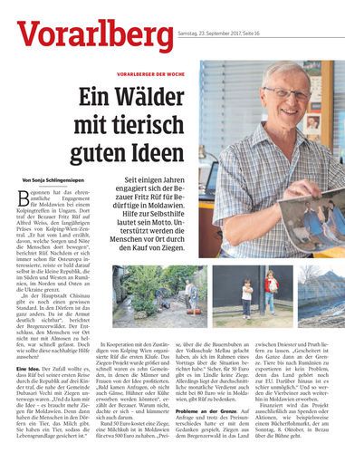 Seit einigen Jahren engagiert sich der Bezauer Fritz Rüf für Bedürftige in Moldawien. Hilfe zur Selbsthilfe lautet sein Motto. Unterstützt werden die Menschen vor Ort durch den Kauf von Ziegen.