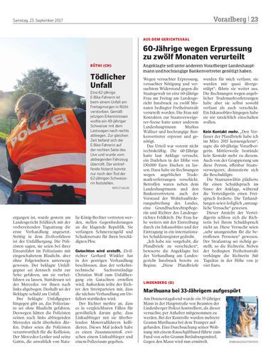Angeklagte soll unter anderem Vorarlberger Landeshauptmann und hochrangige Bankenvertreter genötigt haben.