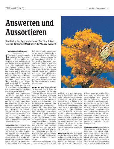 Der Herbst hat begonnen. In der Nacht auf Samstag zog die Sonne (Merkur) in die Waage (Venus).