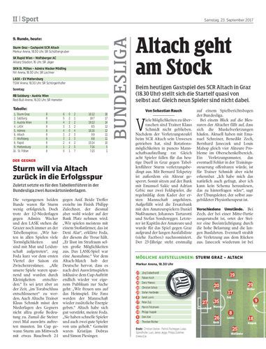 Beim heutigen Gastspiel des SCR Altach in Graz (18.30 Uhr) stellt sich die Startelf quasi von selbst auf. Gleich neun Spieler sind nicht dabei.