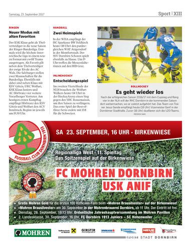 Der FC Dornbirn kann heute vor eigenem Publikum gegen den USK Anif nur überraschen. Alberschwende peilt im Aufeinandertreffen mit Kitzbühel den ersten Heimsieg an.