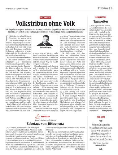 Gastronomie. Vorarlberg, Tirol und Salzburg verlegen die Sperrstunde ab Freitag auf 22 Uhr vor. Die Ländle-Gastronomen haben allerdings wenig Verständnis für diese aus ihrer Sicht zu strenge Maßnahme. Seiten 16/17 Klaus Hartinger