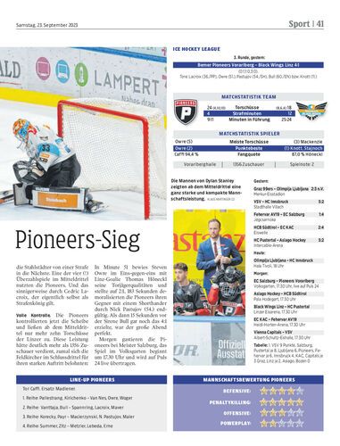 Spielbericht. Die Pioneers Vorarlberg gewinnen dank einer ganz starken Leistung hochverdient mit 4:1 gegen Black Wings Linz. Die Feldkircher kauften den Stahlstädtern im Mitteldrittel komplett den Schneid ab.